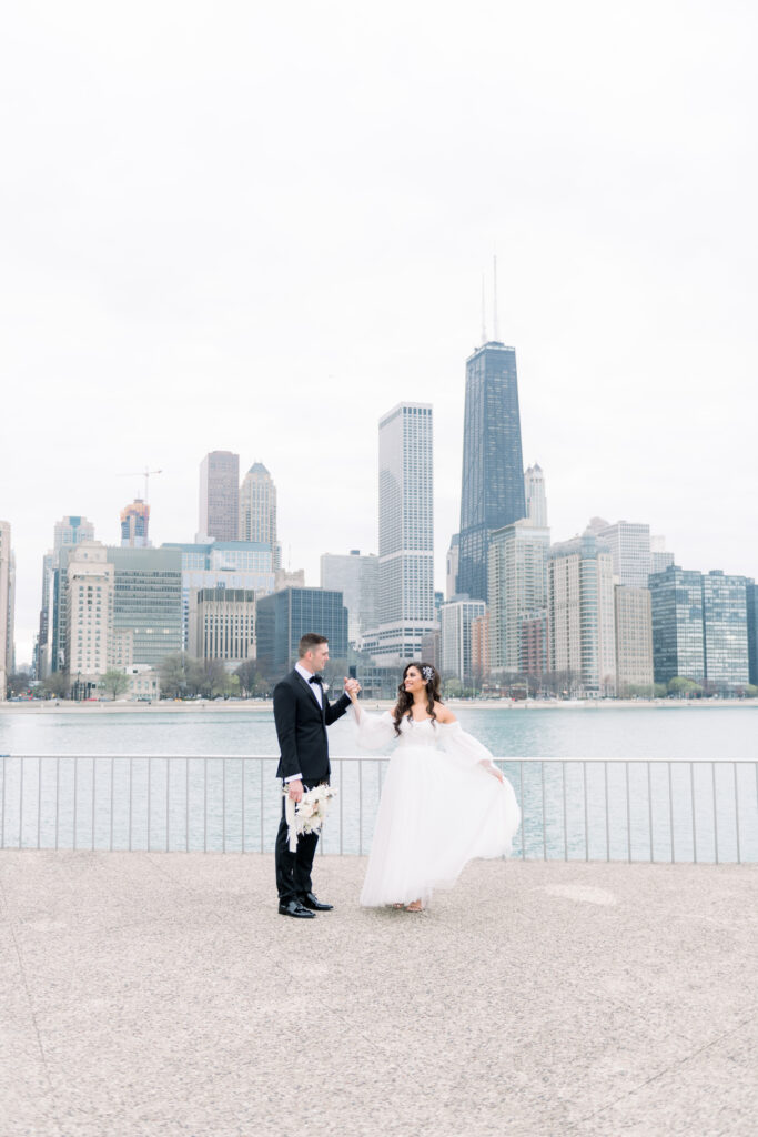 Why it works: You get a stunning lakeside view of the Chicago skyline, framed by the Planetarium building and Lake Michigan. It’s a dramatic backdrop especially for sunset or twilight.